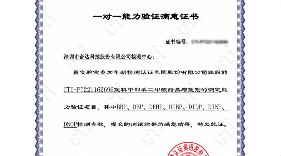 邻苯7P测试方法第三方能力验证顺利通过,88858cc永利科技化学检测能力已达CNAS技术要求。